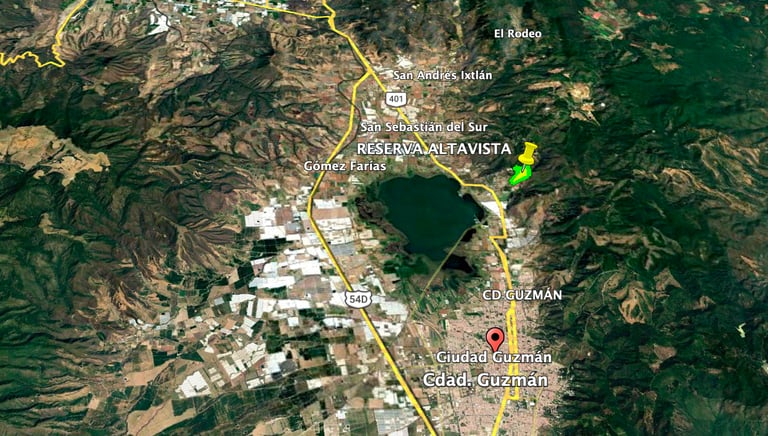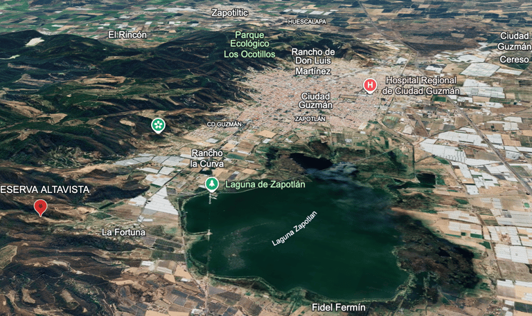 A solo 8 minutos de Ciudad Guzmán por carretera Cd Guzmán - Sayulay y a 4 minutos por camino interno hasta el terreno. Rodeado de fraccionamiento La Fortuna y terrenos productivos, dentro del corredor de crecimiento de la Zona Metropolitana del Sur de Jalisco, con acceso a servicios e infraestructura clave